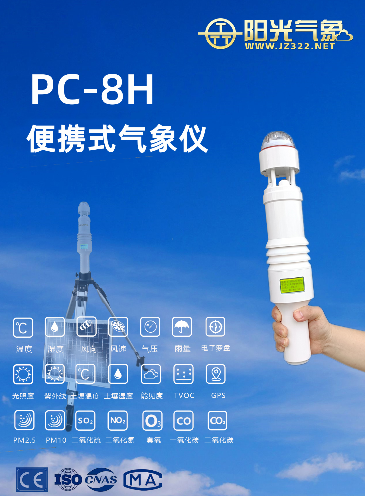 PC-8H是一款設(shè)計(jì)精巧的便攜式氣象儀,支持環(huán)境溫度、濕度、氣壓、風(fēng)速、風(fēng)向、海拔、露點(diǎn)、風(fēng)寒指數(shù)、熱應(yīng)力指數(shù)、太陽(yáng)輻射、光照度、紫外輻射、雨量、PM2.5、PM10、CO2、能見度、土壤溫濕度及空氣質(zhì)量參數(shù)等氣象數(shù)據(jù),整體設(shè)計(jì)融合了人體工學(xué)及軍事氣象的苛刻要求,采用了模塊化、固態(tài)化、數(shù)字化傳感器理念,重塑了傳統(tǒng)自動(dòng)氣象站的外觀結(jié)構(gòu),并在整機(jī)防護(hù)性和耐用性上取得了巨大突破,全金屬材質(zhì)使該款產(chǎn)品可以長(zhǎng)期暴露在戶外,不受惡劣天氣狀況影響,高度集成的電子電路設(shè)計(jì)使小巧的體積下蘊(yùn)含了傳統(tǒng)設(shè)備數(shù)倍重量的功能,為氣象觀測(cè)戶外作業(yè)帶來(lái)了更多方便。這款產(chǎn)品可廣泛應(yīng)用在農(nóng)林業(yè),航空航海,車載觀測(cè),應(yīng)急救援,軍事氣象,現(xiàn)場(chǎng)移動(dòng)氣象觀測(cè)等各個(gè)領(lǐng)域。