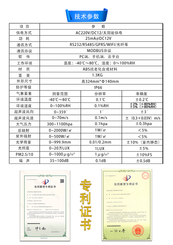 高壓輸電線路微氣象在線監(jiān)測系統(tǒng)是為滿足輸電線路局部氣象環(huán)境監(jiān)測需要而自主研發(fā)的、擁有全部知識(shí)產(chǎn)權(quán)的多要素微氣象監(jiān)測預(yù)警系統(tǒng),輸電線路微氣象在線監(jiān)測系統(tǒng)集數(shù)據(jù)采集、存儲(chǔ)、傳輸和管理于一體,可實(shí)時(shí)采集環(huán)境溫度、濕度、風(fēng)速、風(fēng)向、氣壓、雨量、太陽輻射等氣象參數(shù),并通過RS485/WiFi/GPRS或4G網(wǎng)絡(luò)將監(jiān)測信息發(fā)送至遠(yuǎn)程監(jiān)控中心,或傳輸給視頻監(jiān)控設(shè)備,實(shí)現(xiàn)二次集成。當(dāng)出現(xiàn)異常情況時(shí),系統(tǒng)會(huì)以多種方式發(fā)出預(yù)報(bào)警信息,提示管理人員對(duì)報(bào)警點(diǎn)予以重視或采取必要措施。