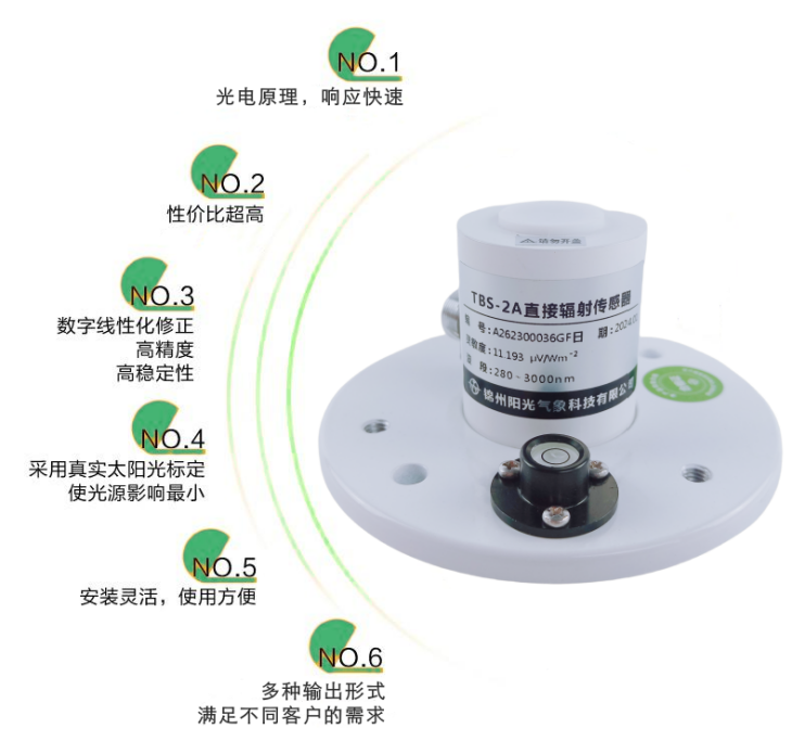 TBS-2A直輻射傳感器專門用于監(jiān)測(cè)和記錄太陽(yáng)直接輻射的強(qiáng)度。其核心部件是高精度感光元件,這些元件對(duì)光線具有極高的敏感性,能夠捕捉太陽(yáng)輻射中未經(jīng)大氣散射、反射或吸收的那部分能量,精確地將光信號(hào)轉(zhuǎn)換為電信號(hào),通過(guò)測(cè)量這一電信號(hào)的大小,可以準(zhǔn)確反映太陽(yáng)光的直接輻射強(qiáng)度。儀器本身沒(méi)有移動(dòng)部件、不需供電、免于維護(hù),能夠勝任野外的長(zhǎng)期監(jiān)測(cè)使用。