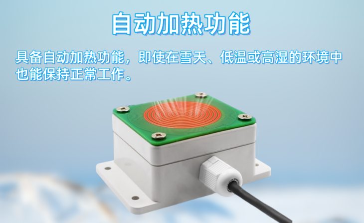 4、具備自動加熱功能,適用于降雪檢測,在長時間低于0度的環(huán)境及高濕度條件下,有效防止冰凍和結(jié)露現(xiàn)象。
